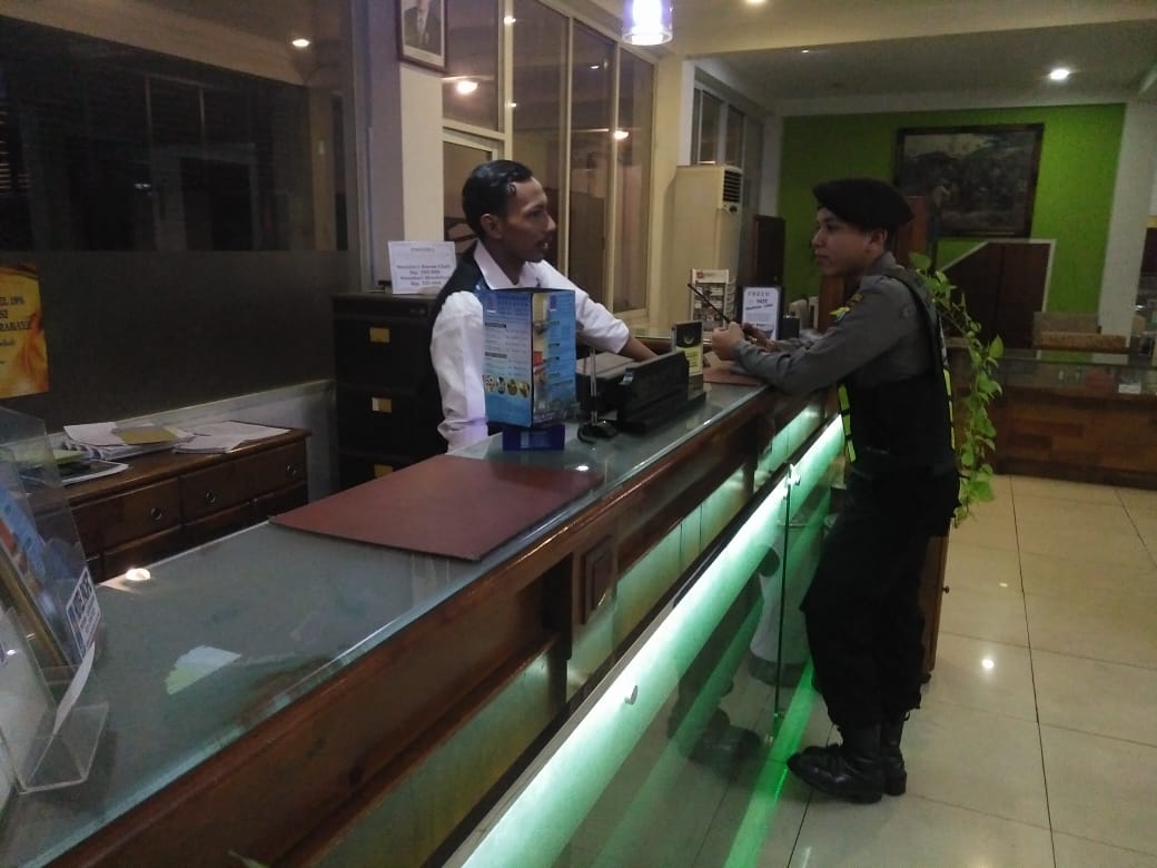 Personil Satsabhara menyampaikan pesan agar petugas keamanan hotel selalu waspada dan berhati-hati, dengan kemungkinan terjadinya tindak kriminalitas 3C (Curat, Curas dan Curanmor).