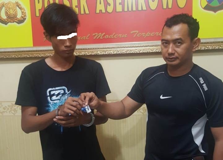 Seputarperak.com- Unit Reskrim Polsek Asemrowo, Polres Pelabuhan Tanjung Perak mengamankan seorang pria pengguna narkoba jenis sabu, Senin, 24 Desember 2018.