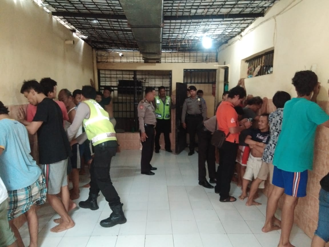 Para tahanan diabsen dan dilakukan penggeledahan badan, untuk memastikan tidak ada yang membawa barang terlarang maupun barang berbahaya.