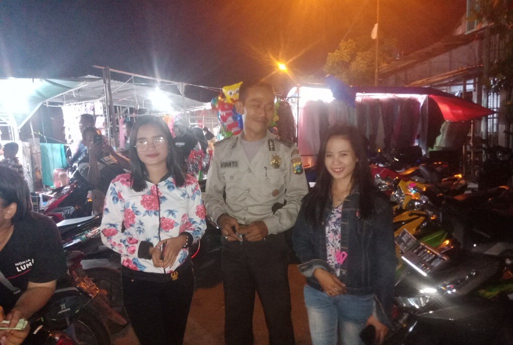 Saat itu selain mematau situasi kamtibmas, Bripka Busaryanto juga menyampaikan pesan-pesan kepada para pengunjung dan juga petugas parkir di tempat ini.