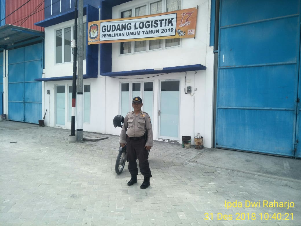 Seputarperak.com- Penjagaan gudang penyimpanan logistik Pemilu 2019 di komplek pergudangan FIRA 51 di Jalan Nambangan, terus dilakukan Polsek Kenjeran, Polres Pelabuhan Tanjung Perak.