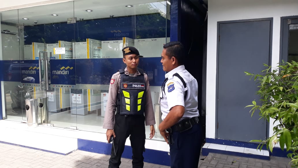Dalam kesempatan itu, personi Satsabhara melakukan pemantauan di sekeliling kantor Bank Mandiri, sekaligus menyampaikan pesan-pesan keamanan kepada petugas sekuriti yang berjaga saat itu.