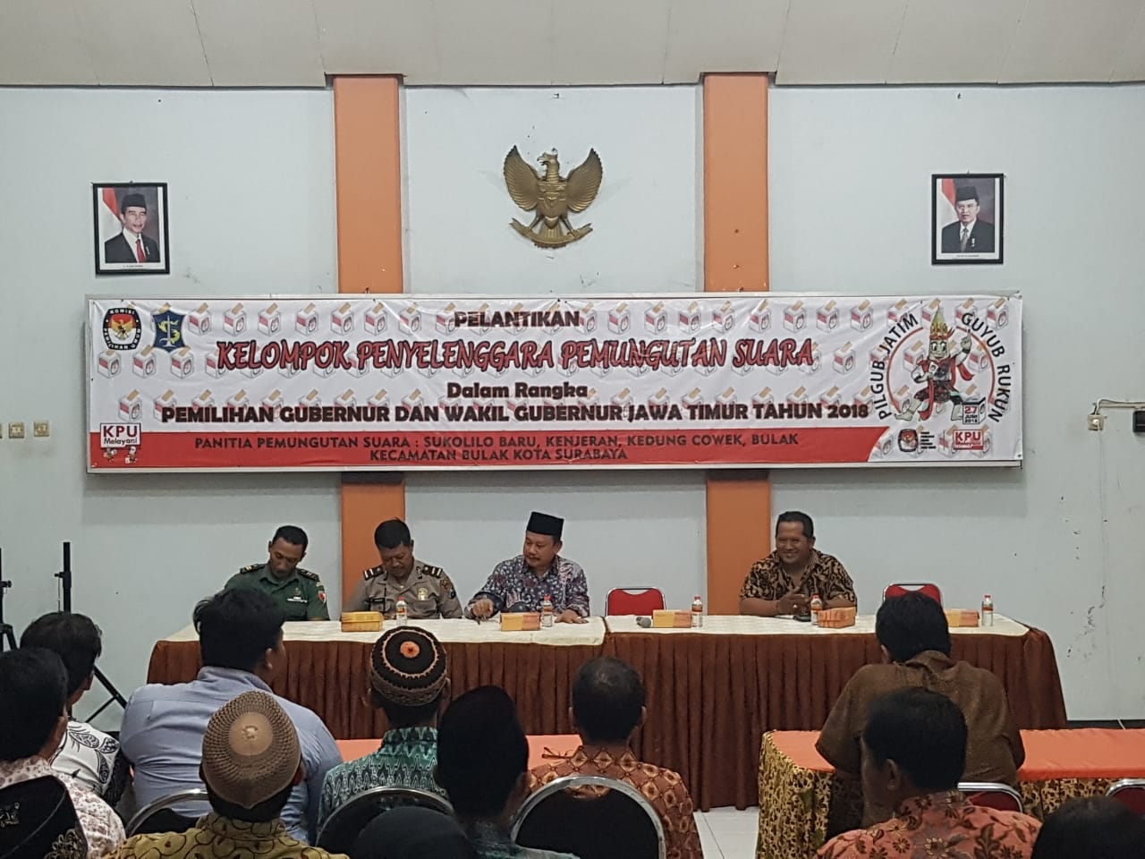 Total sebanyak 57 ketua KPPS se Kecamatan Bulak dilantik untuk melaksanakan Pemilu Gubernur Jatim yang akan berlangsung dalam waktu dekat.