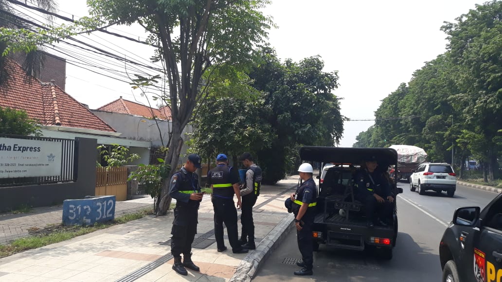 Seputarperak.com- Patroli antisipasi parkir liar dilaksanakan Satsabhara Polres Pelabuhan Tanjung Perak bersama sekuriti Pelindo di sepanjang Jalan Perak Timur, Senin siang, 7 Januari 2019.