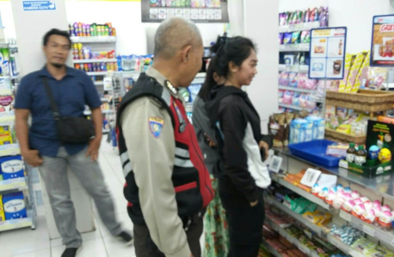 Dalam kunjungannya, Aiptu Muchson menyampaikan pesan-pesan kamtibmas kepada para pegawai mini market.