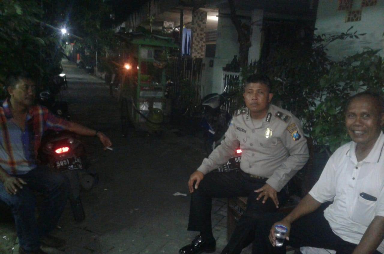 Seputarperak.com- Pesan kamtibmas disampaikan Aiptu Mulyadi Herwoyo, Babinkamtibmas Morokrembangan, Polsek Krembangan, Polres Pelabuhan Tanjung Perak, kepada Bapak Ir Sudarsono selaku ketua RW 05, Rabu malam, 9 Januari 2019.