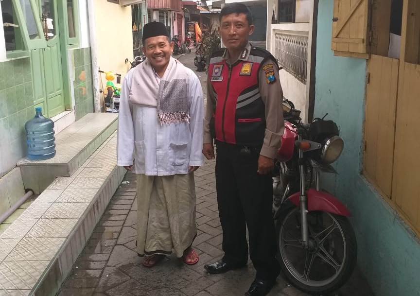 Seputarperak.com- Himbauan jaga kerukunan antar umat beragama disampaikan Aiptu Made Suarthana, Babinkamtibmas Bongkaran, Polsek Pabean Cantikan, Polres Pelabuhan Tanjung Perak kepada Ustad Rosidi, selaku takmir Masjid Mustahil Soleh di Jalan Semut Kalimir, Jumat, 11 Januari 2019.