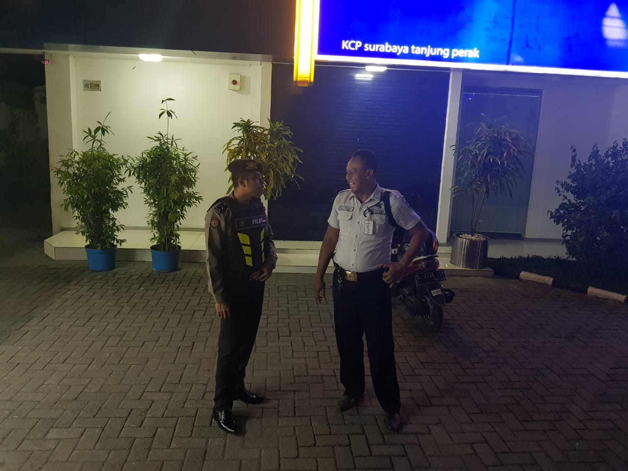 Kegiatan ini pula yang dilakukan personil Satsabhara Polres Pelabuhan Tanjung Perak di kantor Bank Mandiri, Jalan perak Timur, Jumat malam, 11 Januari 2019.