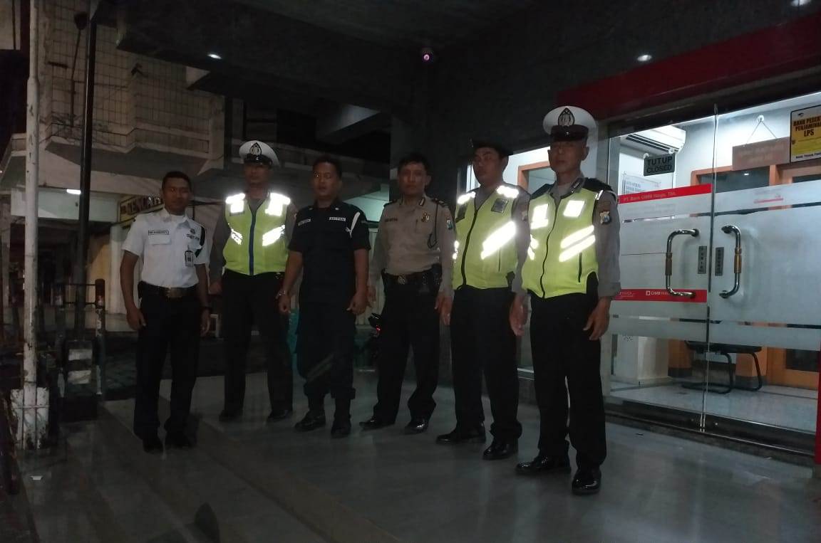 Seputarperak.com- Patroli dilakukan Polsek Pabean Cantikan, Polres Pelabuhan Tanjung Perak di kantor Bank CIMB Niaga, Jalan Kembang Jepun, Jumat malam, 11 Januari 2019.