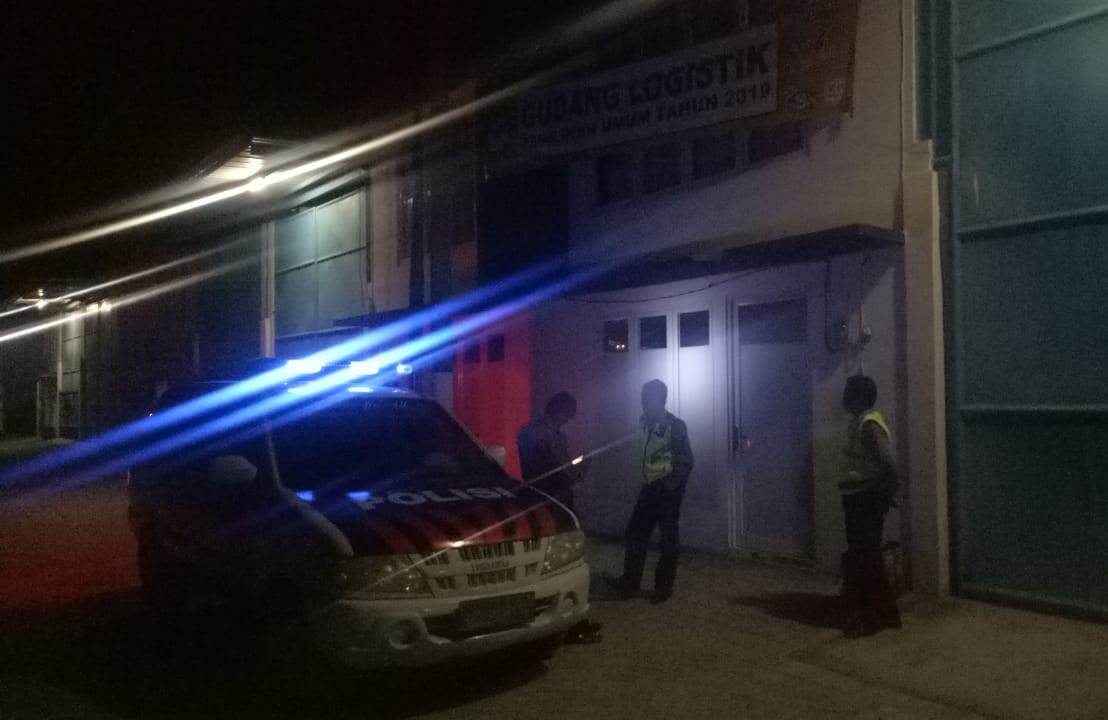 Seputarperak.com- Penjagaan gudang logistik Pemilu di komplek pergudangan FIRA Jalan Nambangan, masih terus dilakukan Polsek Kenjeran, Polres Pelabuhan Tanjung Perak.