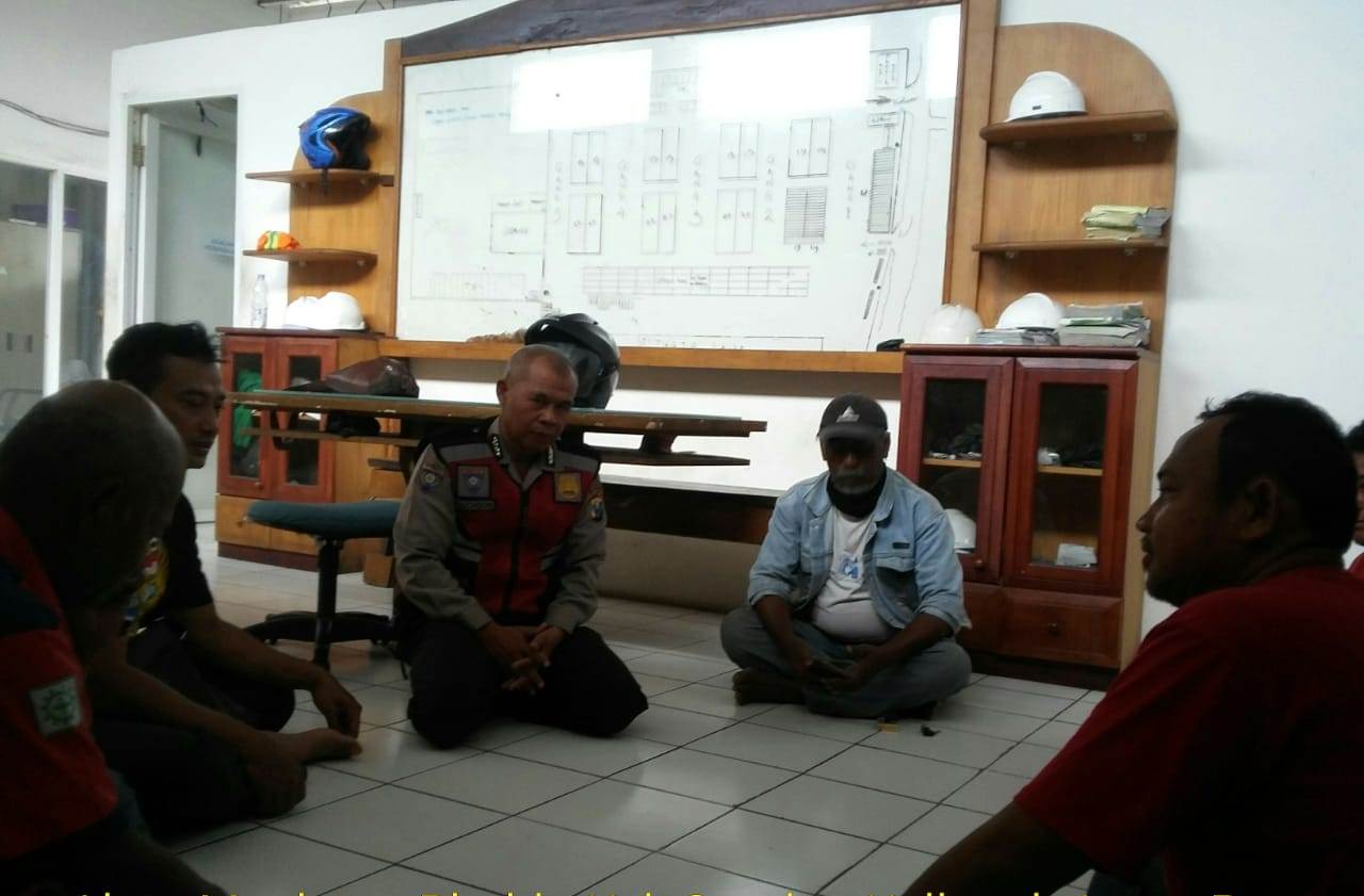 Seputarperak.com- Himbauan keamanan disampaikan Aiptu Muchson, Babinkamtibmas Genting Kalianak, Polsek Asemrowo, Polres Pelabuhan Tanjung Perak kepada para karyawan dan petugas keamanan PT Temas di Jalan Kalianak 55, Sabtu pagi, 12 Januari 2019.