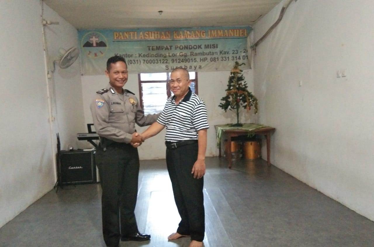 Seputarperak.com- Kunjungan dilakukan Aiptu Lagiman, Babinkamtibmas Tanah Kali (Takal) Kedinding, Polsek Kenjeran, Polres Pelabuhan Tanjung Perak di Panti Asuhan Kamang Immanuel di Jalan Kedinding Lor gang Rambutan, Senin pagi, 14 Januari2019.