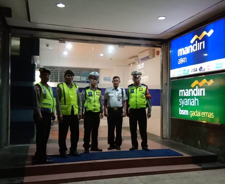 Seperti yang dilakukan personil gabungan Unit Lantas dan Unit Sabhara Polsek Pabean Cantikan, Kamis malam, 17 Januari 2019 di kantor Bank Mandiri, Jalan Kembang Jepun.