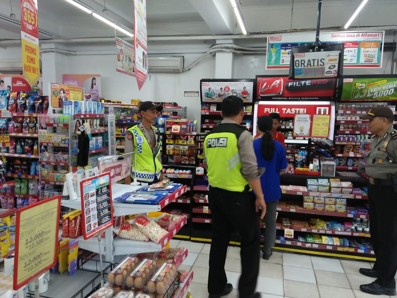 Seputarperak.com- Patroli dilaksanakan personil gabungan Unit Lantas dan Unit Sabhara Polsek Semampir, Polres Pelabuhan Tanjung Perak di mini market Alfamart, Jalan Wonosari, Sabtu siang, 19 Januari 2019.