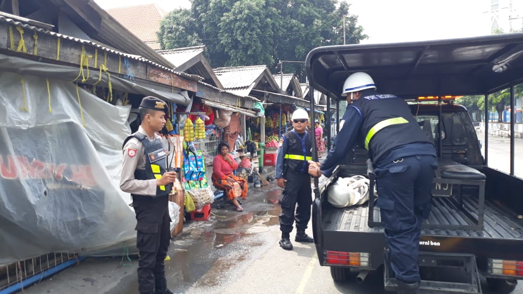 Seputarperak.com- Kegiatan patroli rutin kembali dilakukan personil Satsabhara Polres Pelabuhan Tanjung Perak di Pasar Ujung, Sabtu siang, 19 Januari 2019 bersama petugas sekuriti Pelindo.