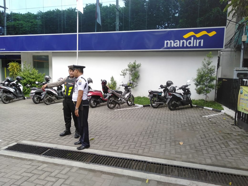 Seputarperak.com- Patroli rutin digelar Satsabhara Polres Pelabuhan Tanjung Perak di kantor Bank Mandiri Jalan Perak Timur, Selasa, 22 Januari 2019.