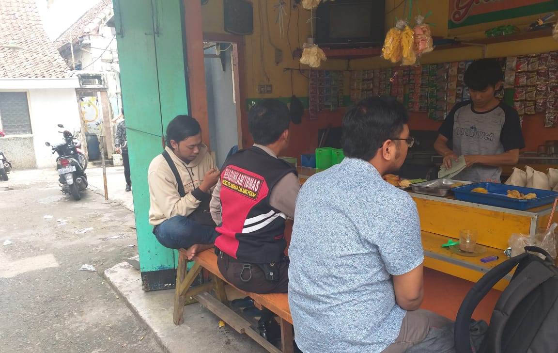 Seputarperak.com- Pesan waspada kriminalitas 3C (Curat, Curas dan Curanmor) disampaikan Aiptu Made Suarthana, Babinkamtibmas Bongkaran, Polsek Pabean Cantikan, Polres Pelabuhan Tanjung Perak saat mengunjungi warung kopi di Jalan Jagalan, Kamis pagi, 24 Januari 2019.