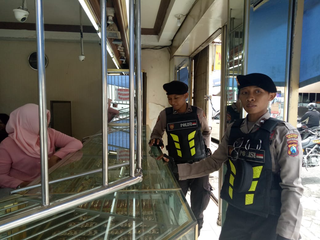 Diantaranya seperti yang dilakukan personil Satsabhara Polres Pelabuhan Tanjung Perak di toko emas Pasar Kebalen, Kamis sore, 24 Januari 2019.