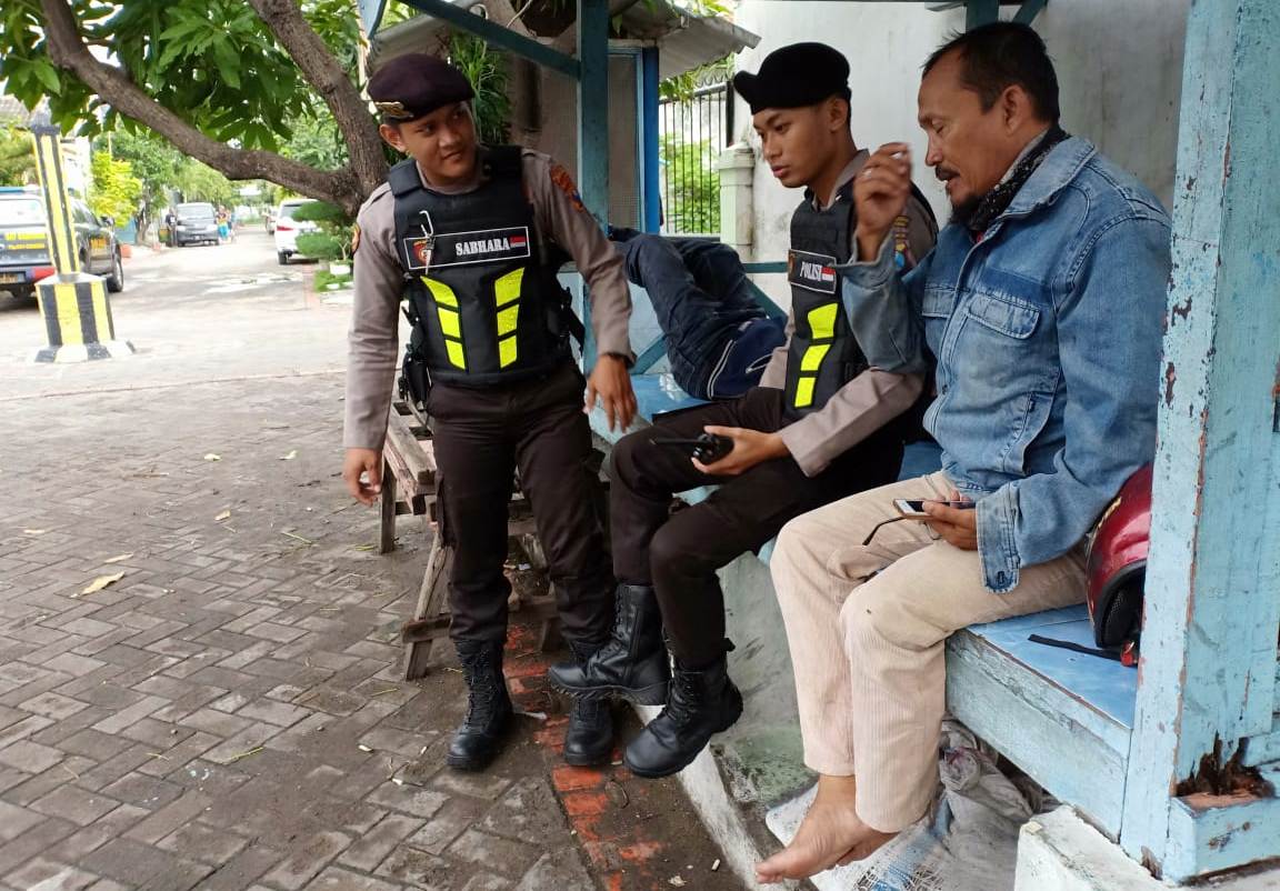 Seputarperak.com- Patroli dilakukan anggota Satsabhara Polres Pelabuhan Tanjung Perak di pemukiman Jalan Ikan Mungsing, Senin sore, 28 Januari 2019.