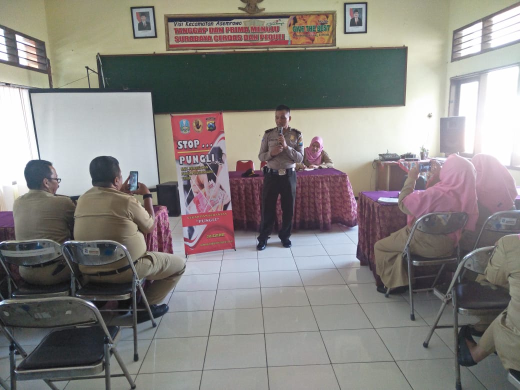 Seputarperak.com- Sosialisasi pemberantasan pungli disampaikan Ipda Eko Mustaghfirin, Panit Binmas Polsek Asemrowo, Polres Pelabuhan Tanjung Perak, Senin pagi, 4 Pebruari 2019 di kantor Kecamatan Asemrowo.