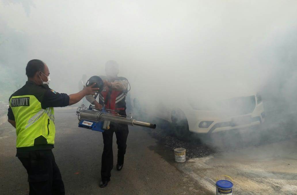Fogging atau penyemprotan ini dilaksanakan oleh Aiptu Choifin dibantu beberapa warga sekitar secara bergantian.