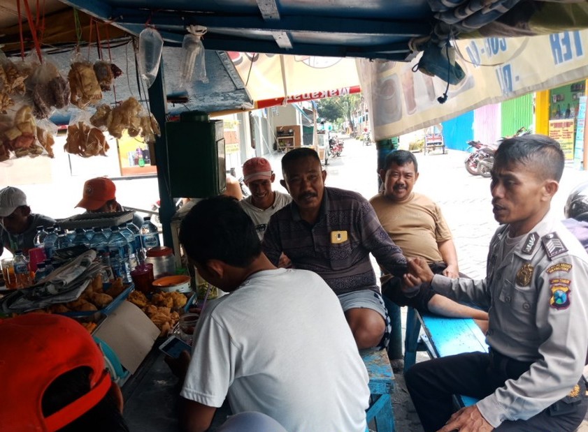 Seputarperak.com- Pesan kamtibmas disampaikan Bripka Busaryanto, Babinkamtibmas Dupak, Polsek Krembangan, Polres Pelabuhan Tanjung Perak, kepada warga RT 02 RW 04 Bangunsari, yang ditemui di warung kopi, Senin, 18 Pebruari 2019.