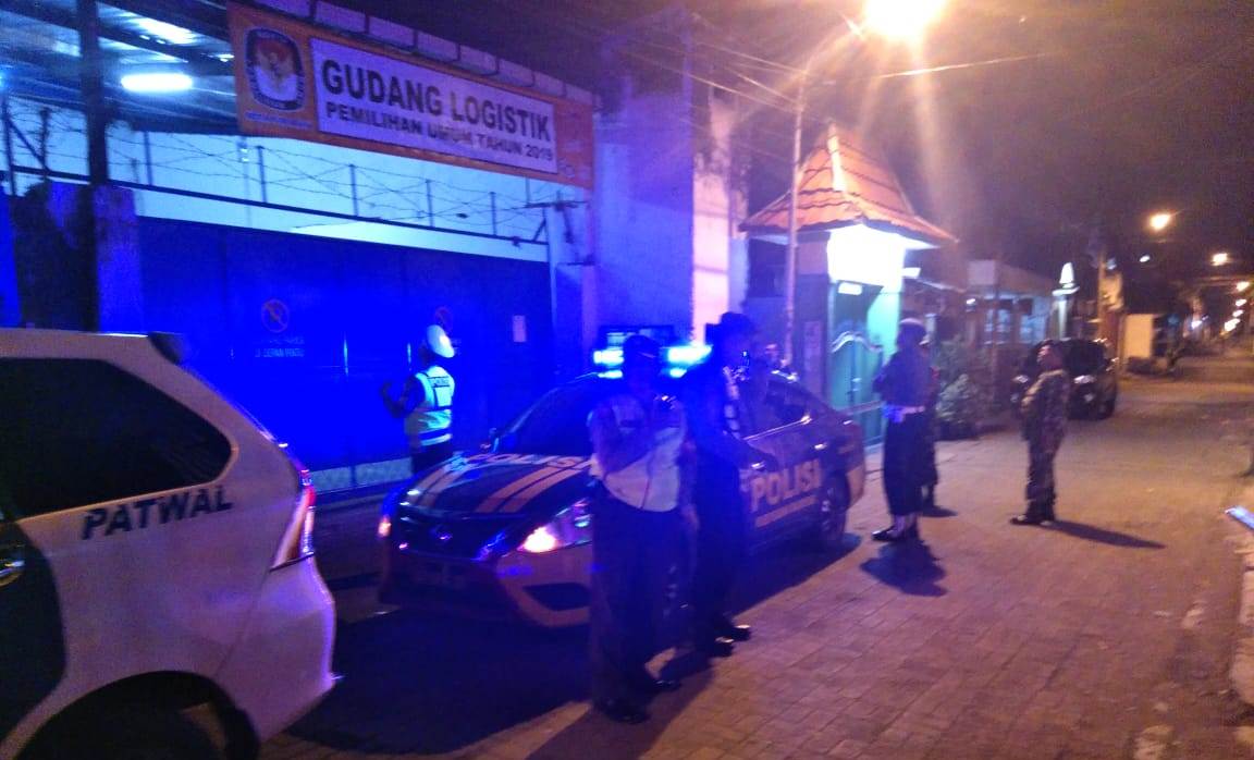 Sasaran pertama patroli yang diikuti Satsabhara, Satlantas, Satreskrim, Satintelkam dan semua perwakilan satuan fungsi lain ini diawali dengan melakukan kontrol di gudang logistik surat suara Pemilu yang berada di Jalan Kalilom Baru gang II.