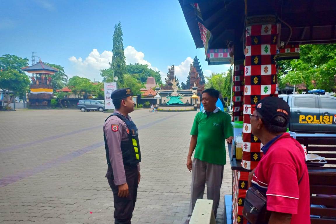 Dalam kunjungannya itu, anggota Satsabhara berdialog dengan para penjaga keamanan pura.