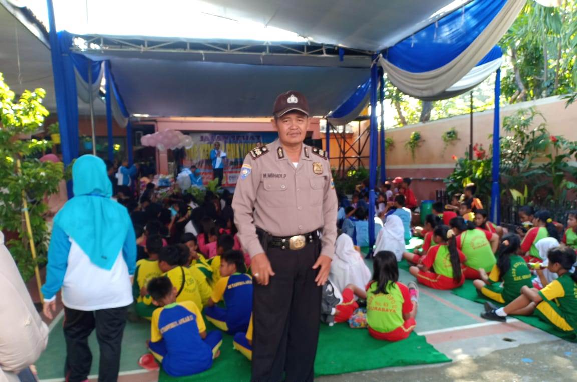 Seputarperak.com- Pengamanan kegiatan jalan sehat yang dilaksanakan siswa-siswi SMP Kemala Bhayangkari di Jalan Sidotopo Lor, dilakukan Aiptu Muhadi Purnomo, Babinkamtibmas Sidotopo, Polsek Semampir, Polres Pelabuhan Tanjung Perak, Minggu, 10 Maret 2019.
