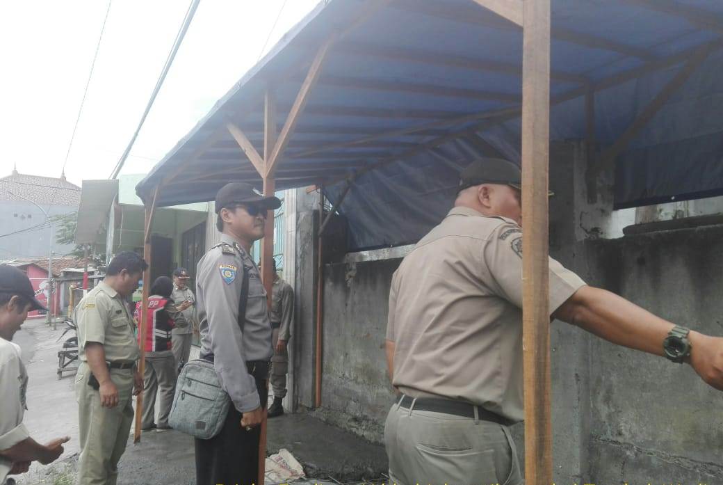 Seputarperak.com- Penertiban bangunan liar (Bangli) di atas saluran air dilakukan petugas Satpol PP di seputaran Jalan Kedindig Lor, Selasa pagi, 12 Maret 2019.