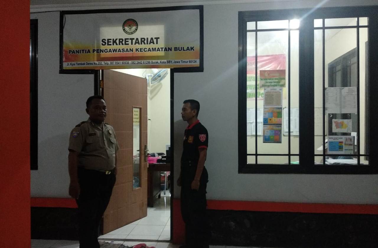 Seputarperak.com- Pengamanan logistik Pemilu dilakukan Aiptu Puji Sugiarto, Babinkamtibmas Kedung Cowek, Polsek Kenjeran, Polres Pelabuhan Tanjung Perak di PPK Kecamatan Bulak, Selasa malam, 12 Maret 2019.