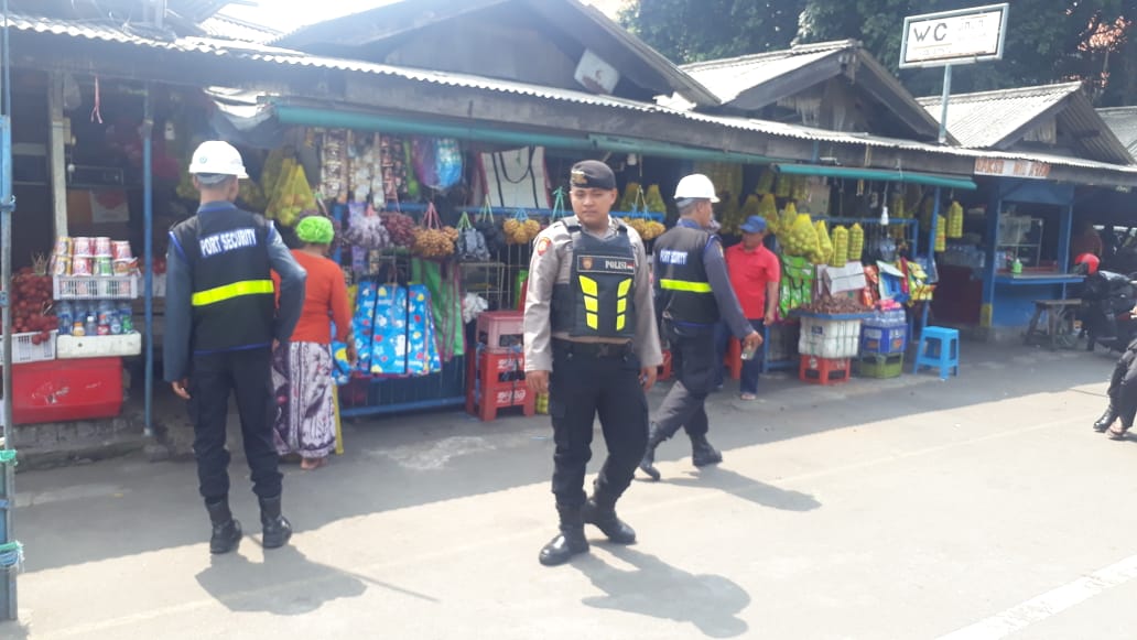 Seputarperak.com- Patroli rutin gabungan dilaksanakan Satsabhara Polres Pelabuhan Tanjung Perak bersama sekuriti Pelindo di Pasar Ujung, Senin pagi, 25 Maret 2019.