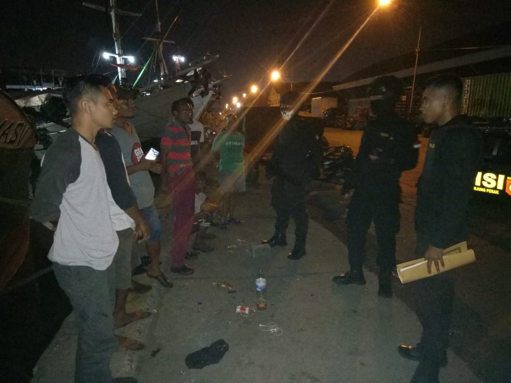 Seperti yang dilakukan personil Unit Raimas Satsabhara Rabu malam, 27 Maret 2019 di kawasan Jalan Tambak Asri dan sekitar Pelabuhan Kalimas.