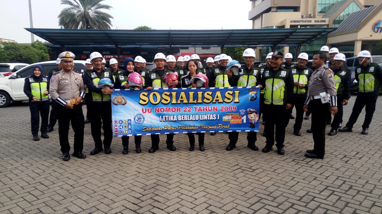 Seputarperak.com- Sosialisasi etika berlalu lintas sesuai undang-undang nomor 22 tahun 2009 disampaikan anggota Satlantas Polres Pelabuhan Tanjung Perak, Kamis pagi, 28 Maret 2019 kepada sekuriti PT Terminal Petikemas Surabaya (TPS) di Jalan Tanjung Mutiara, Perak Barat.