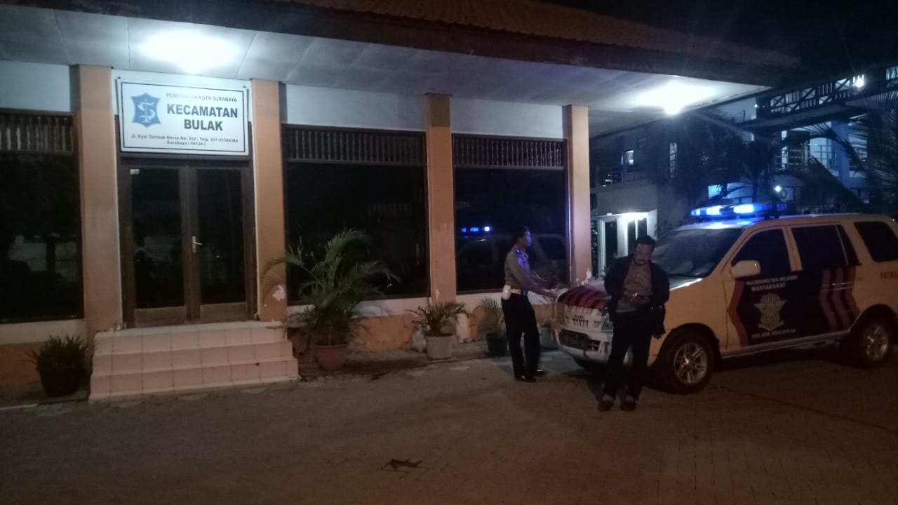 Seputarperak.com- Patroli rutin dilakukan personil Polsek Kenjeran di kantor Kecamatan Bulak, Selasa malam, 2 April 2019, untuk memantau keamanan gudang logistik Pemilu.