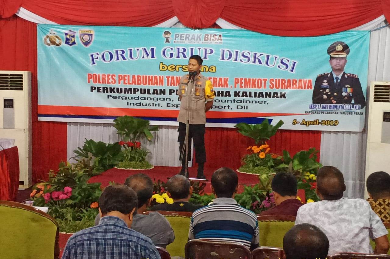 Seputarperak.com- Pertemuan tripartite dilaksanakan antara Polres Pelabuhan Tanjung Perak, Pemkot Surabaya dan para pengusaha yang tergabung dalam asosiasi PPK (Perkumpulan Pengusaha Kalianak), Jumat, 5 April 2019.