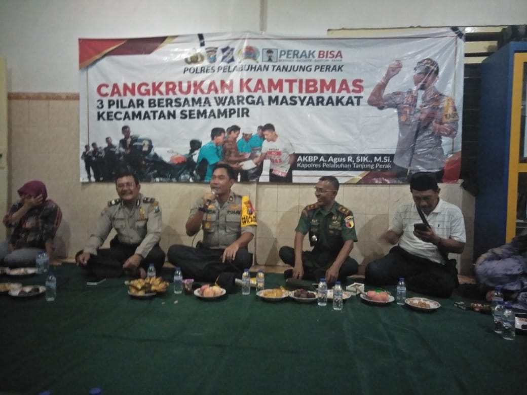Seputarperak.com- Cangkrukan Senin Militan digelar Polsek Semampir, Polres Pelabuhan Tanjung Perak, Senin malam, 8 April 2019 di RW 03 Jalan Karang Tembok, Kelurahan Pegirian.