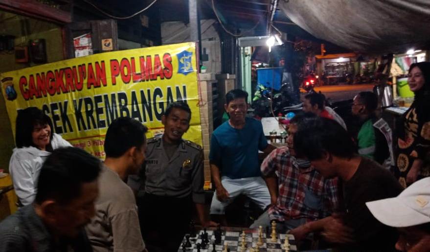 Diungkapkan Kapolsek Krembangan, Kompol Esti Setija Oetami, SH, kegiatan cangkrukan kali ini juga atas arahan Kapolres, sebagai upaya mengenalkan program SPKT door to door dan Program Unggulan.