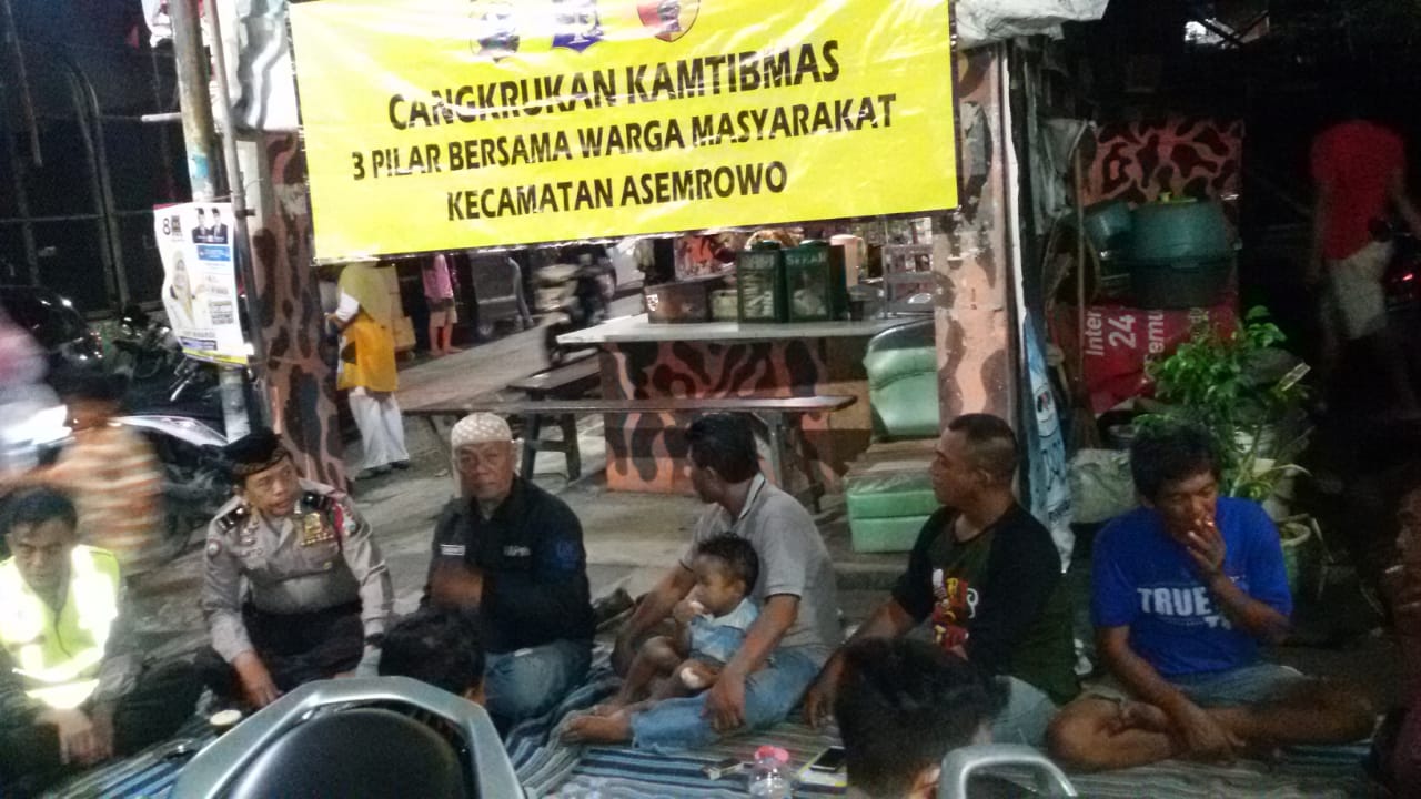 Seputarperak.com- Kegiatan cangkrukan dilakukan Polsek Asemrowo, Polres Pelabuhan Tanjung Perak bersama warga RT 04 RW 03, Kamis malam, 11 April 2019.