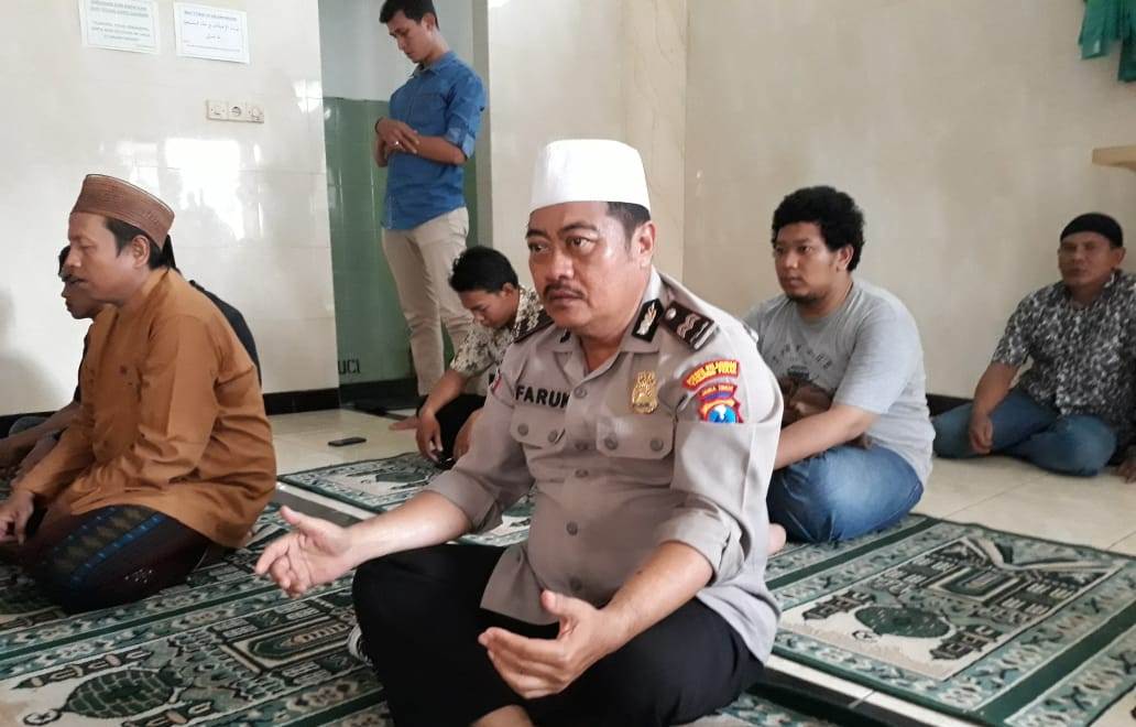 Saat itu usai Sholat Jumat, Aiptu Achmad Faruk menemui takmir masjid dan beberapa jemaah untuk menyampaikan pesan-pesan positif.