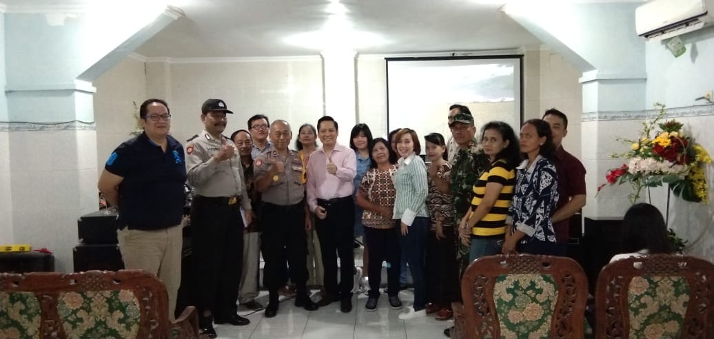 Seputarperak.com- Kunjungan dilakukan Kapolsek Asemrowo, Polres Pelabuhan Tanjung Perak, Kompol Nur Suhud di Gereja Panen Raya Jalan Asem Raya dan Gereja GKI Siloam Jalan Simorejosari, dalam rangka sosialisasi Pemilu, Minggu 14 April 2019.
