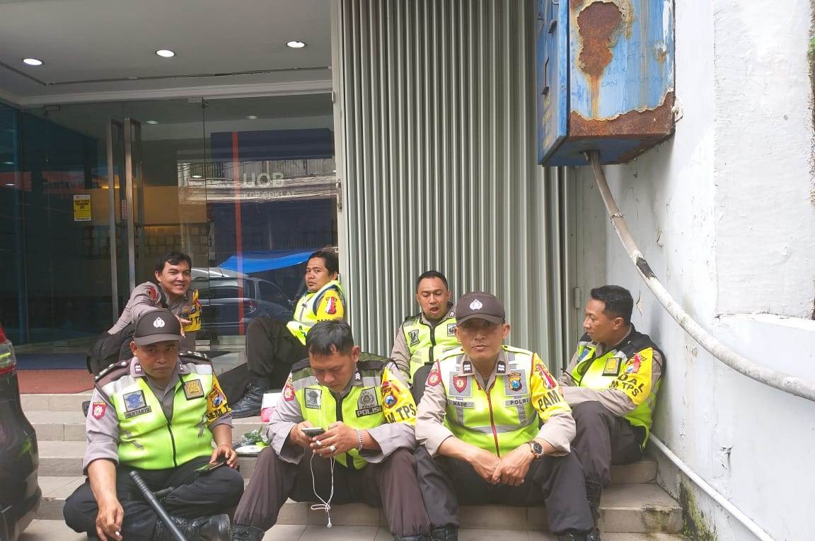 Saat itu para personil terus melakukan pengawasan di sekeliling kantor kelurahan, untuk mencegah hal-hal yang tidak diinginkan, terkait pendistribusian logistik Pemilu dari kantor kecamatan.