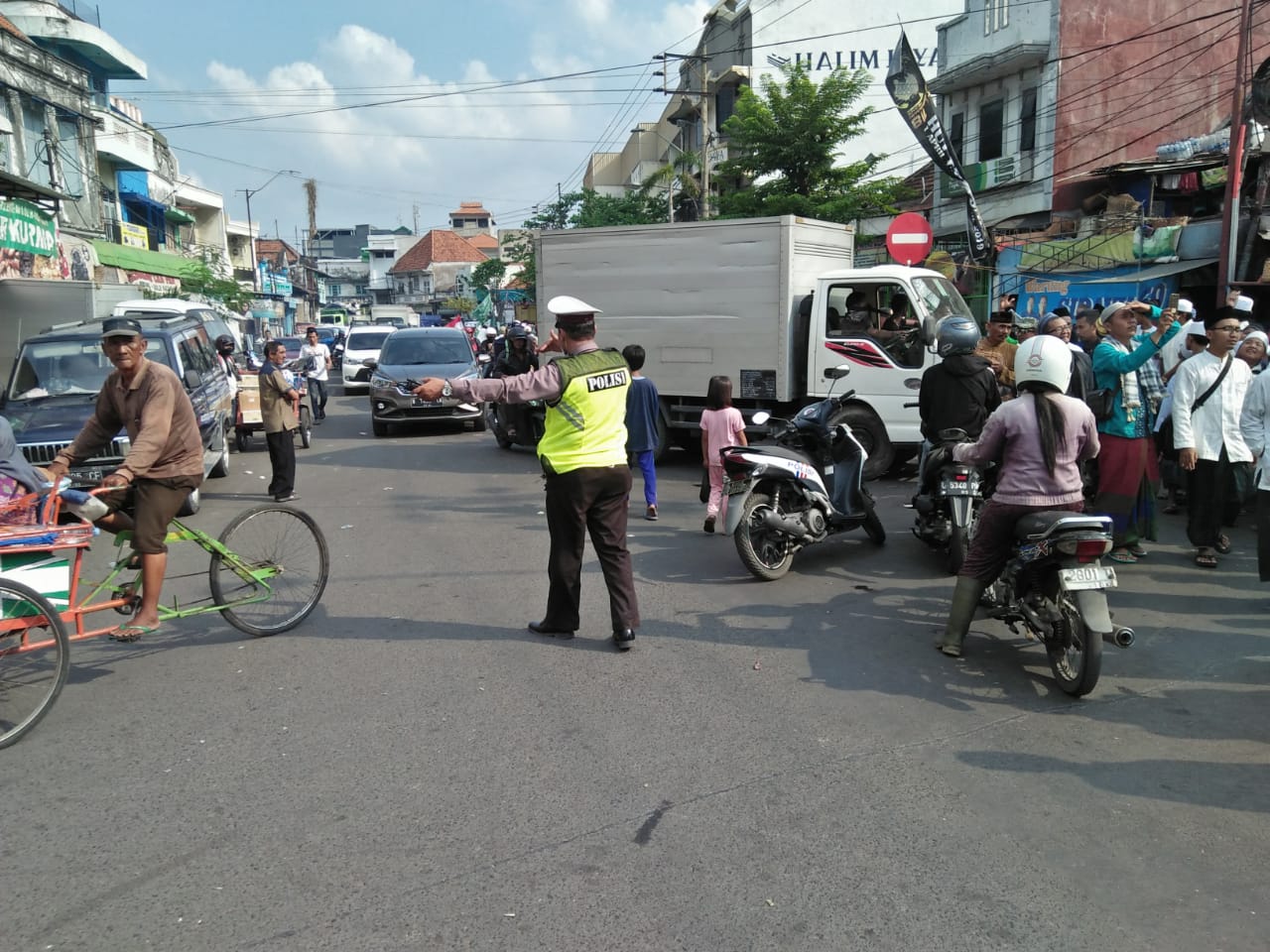 Seputarperak.com- Pengaturan lalu lintas dilakukan personil Satlantas Polres Pelabuhan Tanjung Perak di Jalan Sasak, Sabtu, 27 April 2019 untuk mengurai kepadatan dan mencegah kemacetan.