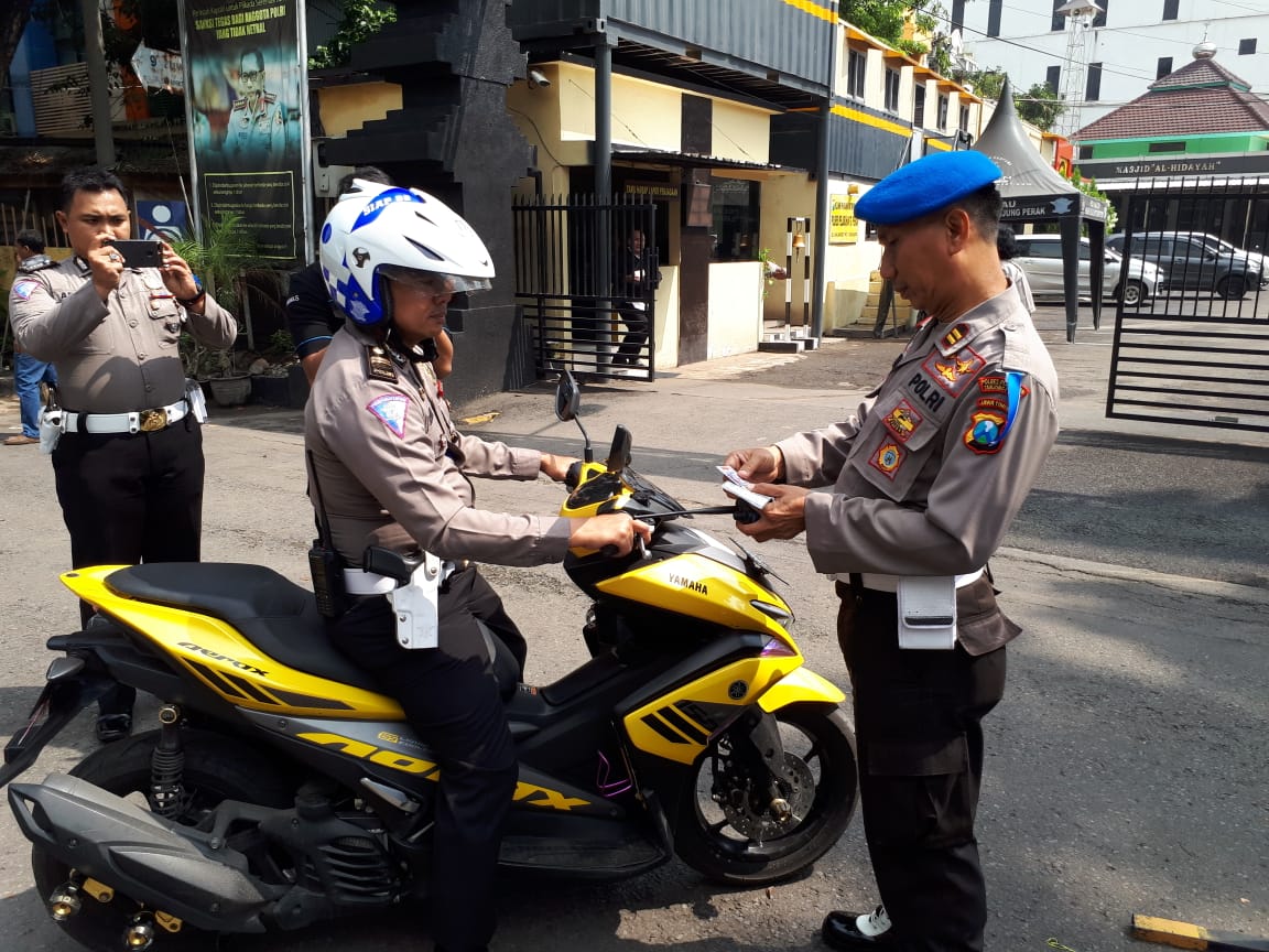 Semua personil dan ANS tanpa terkecuali, yang tengah mengendarai kendaraan bermotor, diperiksa kelengkapan surat-suratnya. Terutama SIM dan STNK.