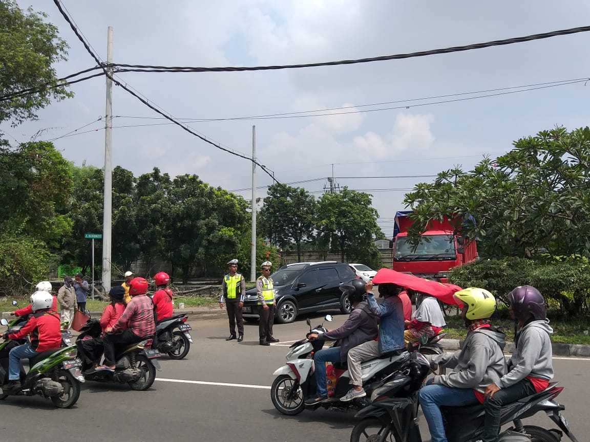 Total terdapat sekitar 40 buruh yang melintas di Jalan Margomulyo. Mereka menggunakan 20 sepeda motor.