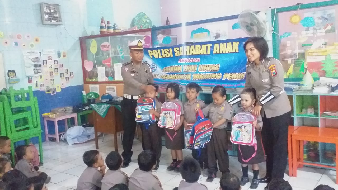 Diantaranya seperti yang dilakukan Kanit Dikyasa Satlantas Polres Pelabuhan Tanjung Perak, Ipda Dody S, Kamis pagi, 2 Mei 2019 di TK Bhayangkari.