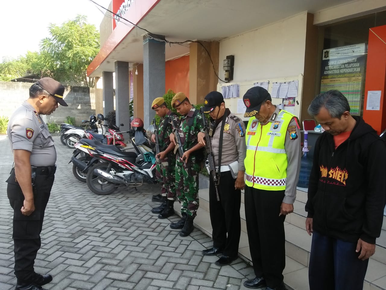 Seusai apel, para personil piket baru langsung menempati posisi masing-masing yang telah ditentukan.