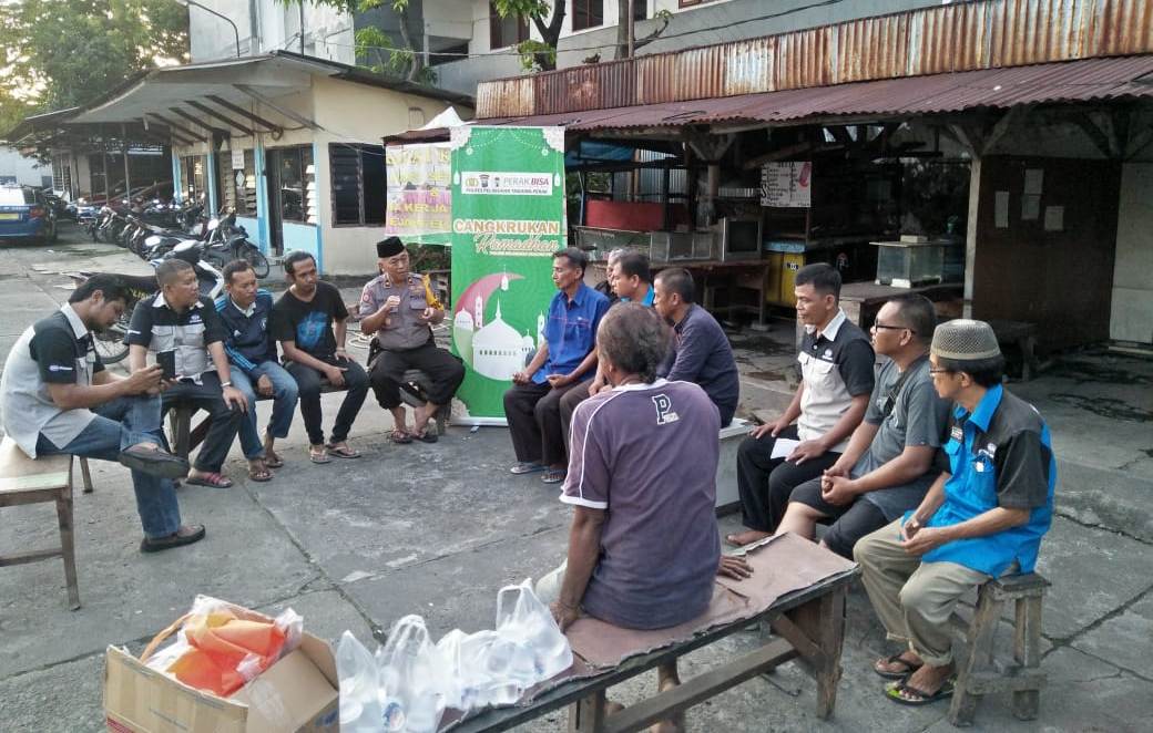 Seputarperak.com- Polsek Asemrowo, Polres Pelabuhan Tanjung Perak melaksanakan kegiatan Cangkrukan Ramadhan bersama para sopir dan karyawan taksi di pangkalan Taksi Bosowa, Jalan Asem Raya, Selasa sore, 7 Mei 2019.