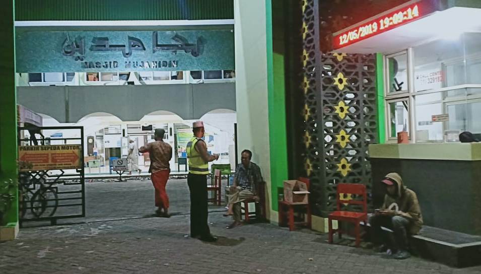 Seputarperak.com- Pengamanan kegiatan Sholat Tarawih di Masjid Mujahidin, Jalan Perak Barat dilakukan anggota Satlantas Polres Pelabuhan Tanjung Perak, Minggu malam, 12 Mei 2019.
