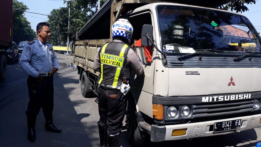 Seputarperak.com- Patroli diikuti penindakan dilakukan anggota Satlantas Polres Pelabuhan Tanjung Perak bersama anggota Dinas Perhubungan (Dishub) di kawasan Jalan Margomulyo, Selasa pagi, 14 Mei 2019.